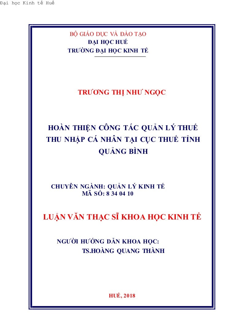 Luận Văn Hoan Thiện Cong Tac Quản Ly Thuế Thu Nhập Ca Nhan Tại Cục Th